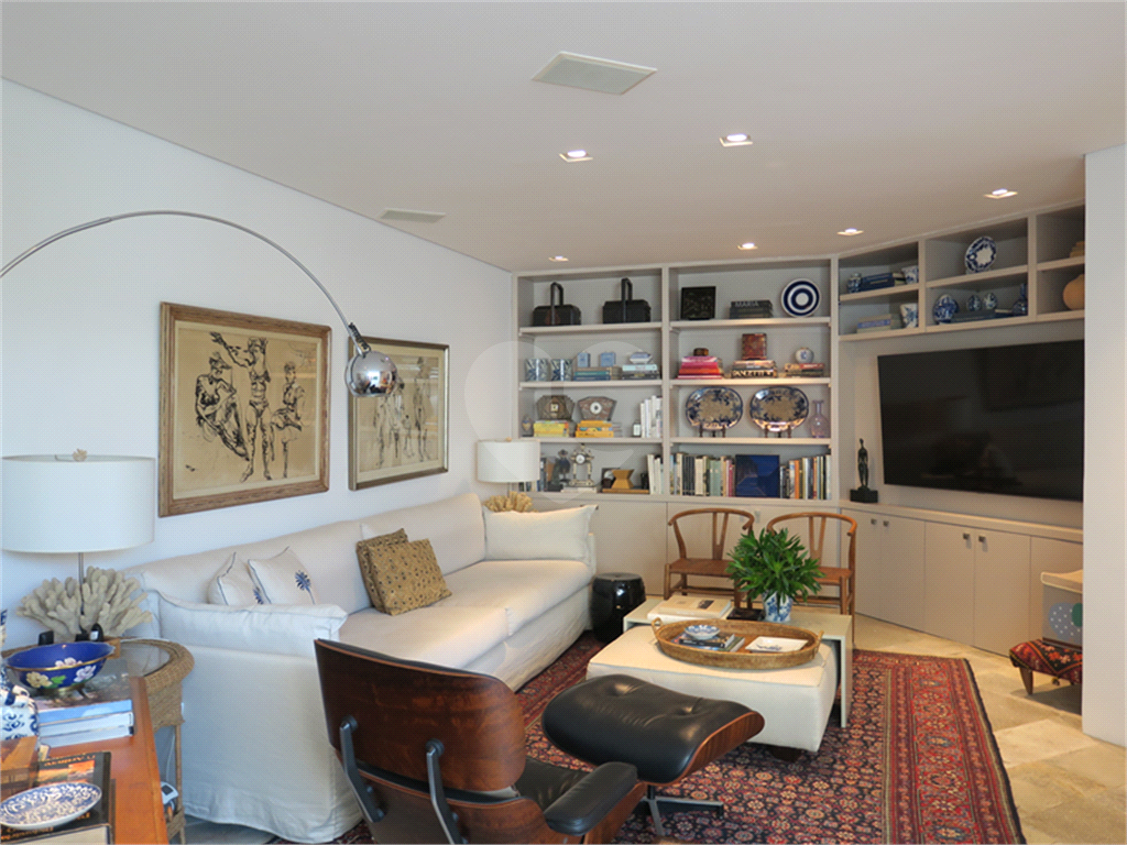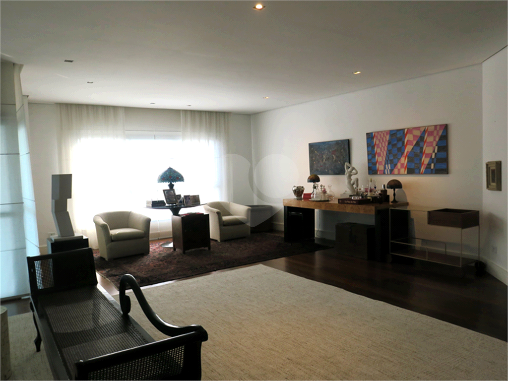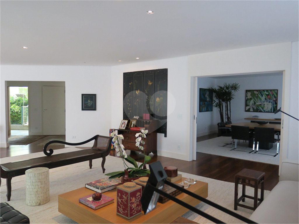 Amplo living para vários ambientes com terraço. Sala de jantar. Sala de TV. Jardim interno. Belíssima piscina com espaço gourmet e churrasqueira. Sauna.