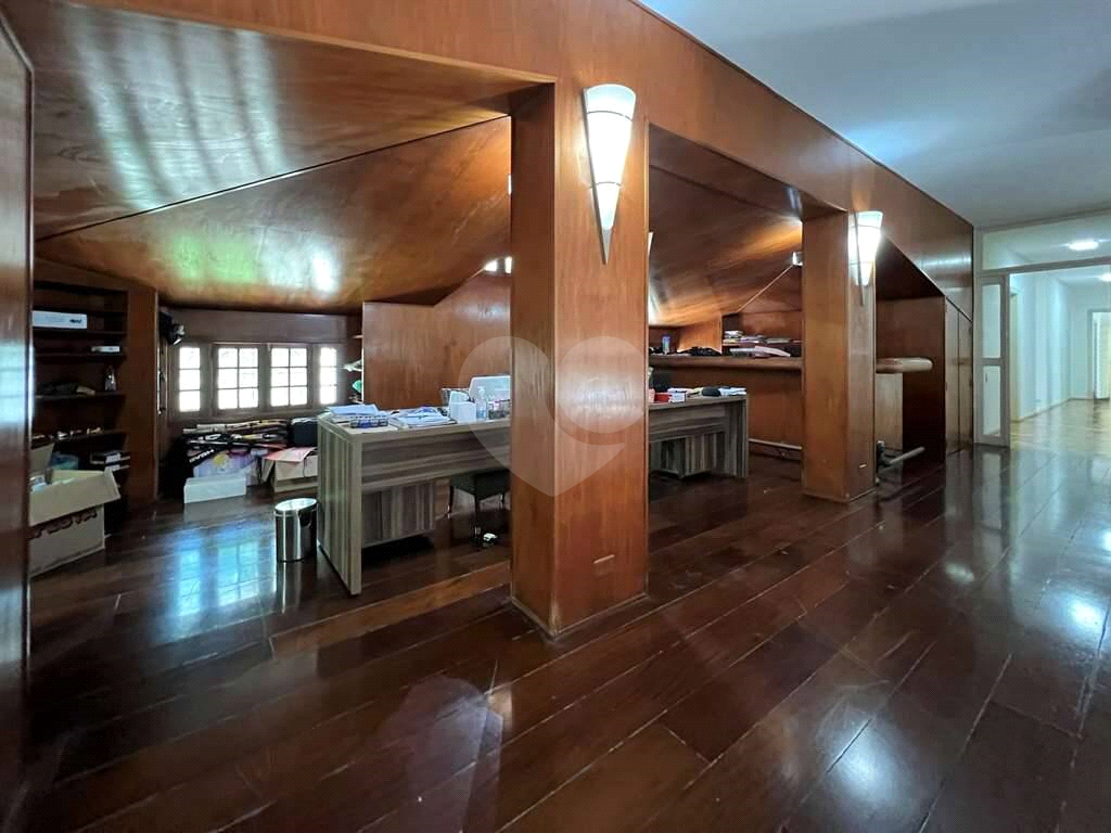 - Mezanino todo revestido em lambril, com escritório e bar.